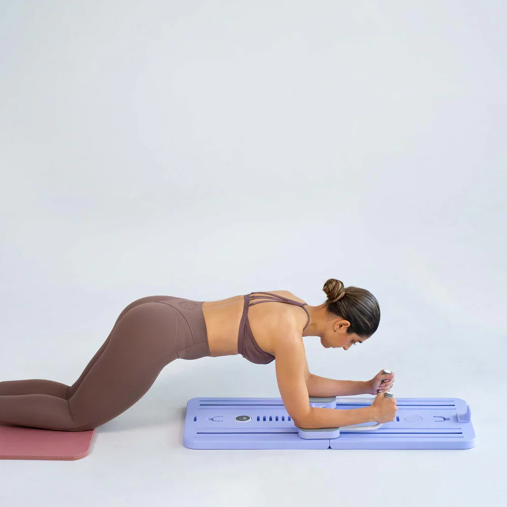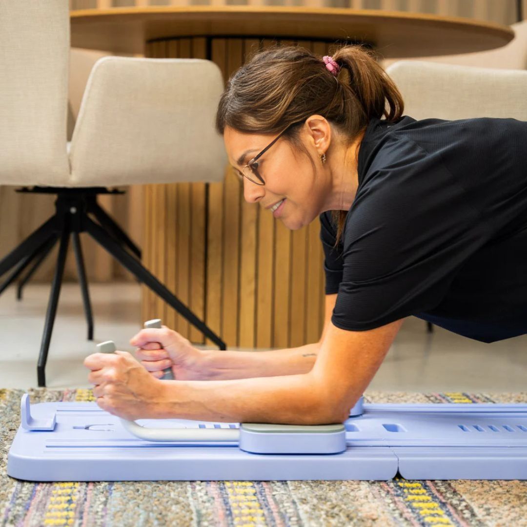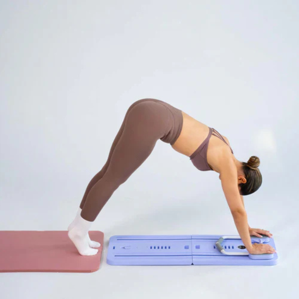 Ontdek de ultieme Pilates-ervaring met het opvouwbare Pilates board van Pilalift in een stijlvolle paarse uitvoering.